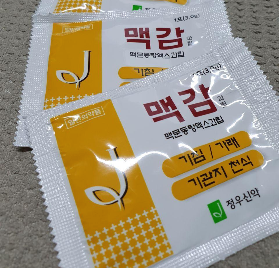 맥감은 평소처럼 먹고 중간 중간 목이 불편할 때, 용각산을 먹었습니다.