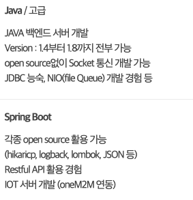이런 기술을 본인이 사용할 수 있는지, 어느정도의 레벨로 구현할 수 있는지가 전혀 표현되지 않아