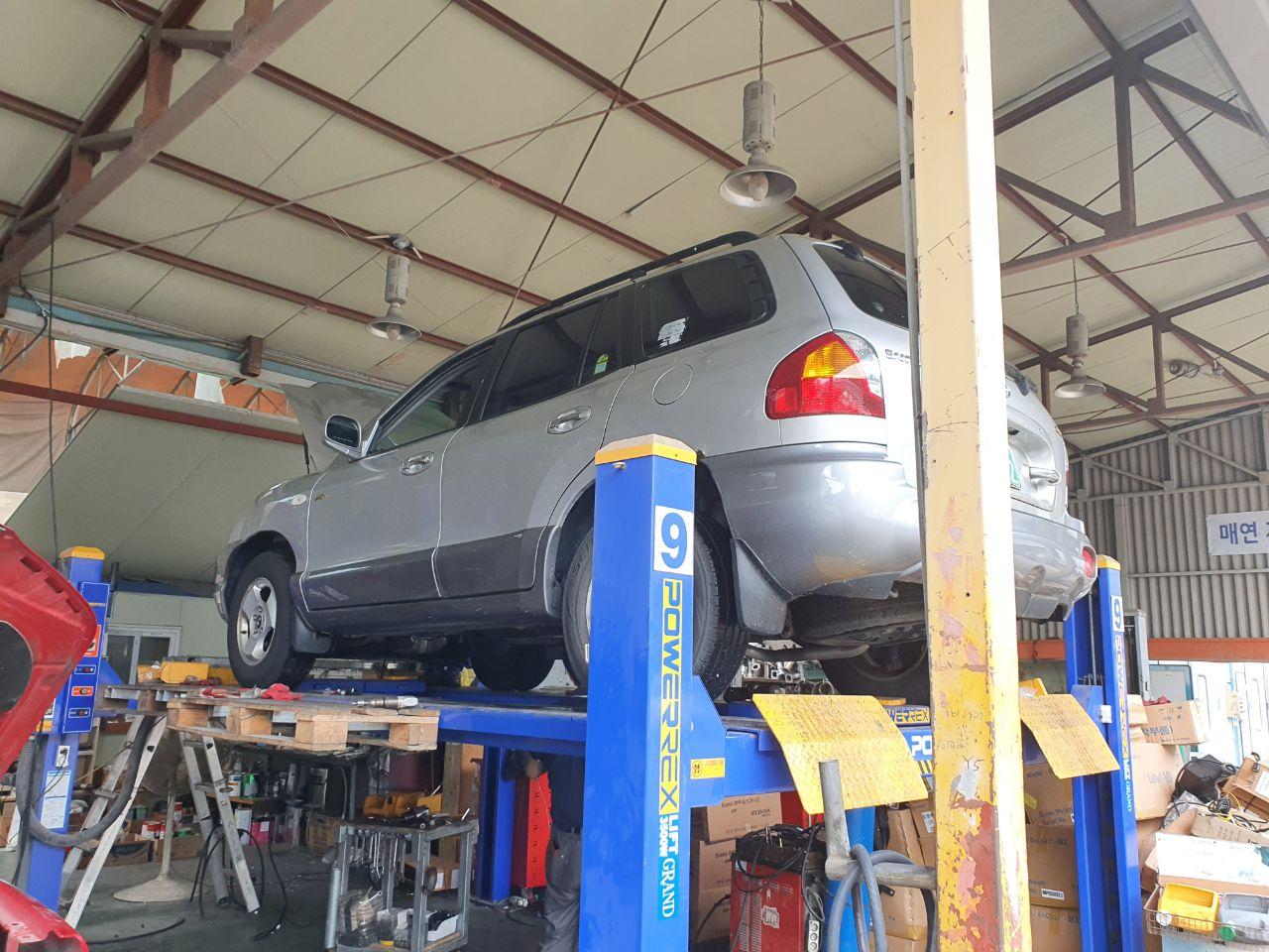 1급 공업사 방문 후 접수와 동시에 차를 들어올리고 이제부터 본격 작업 시작.