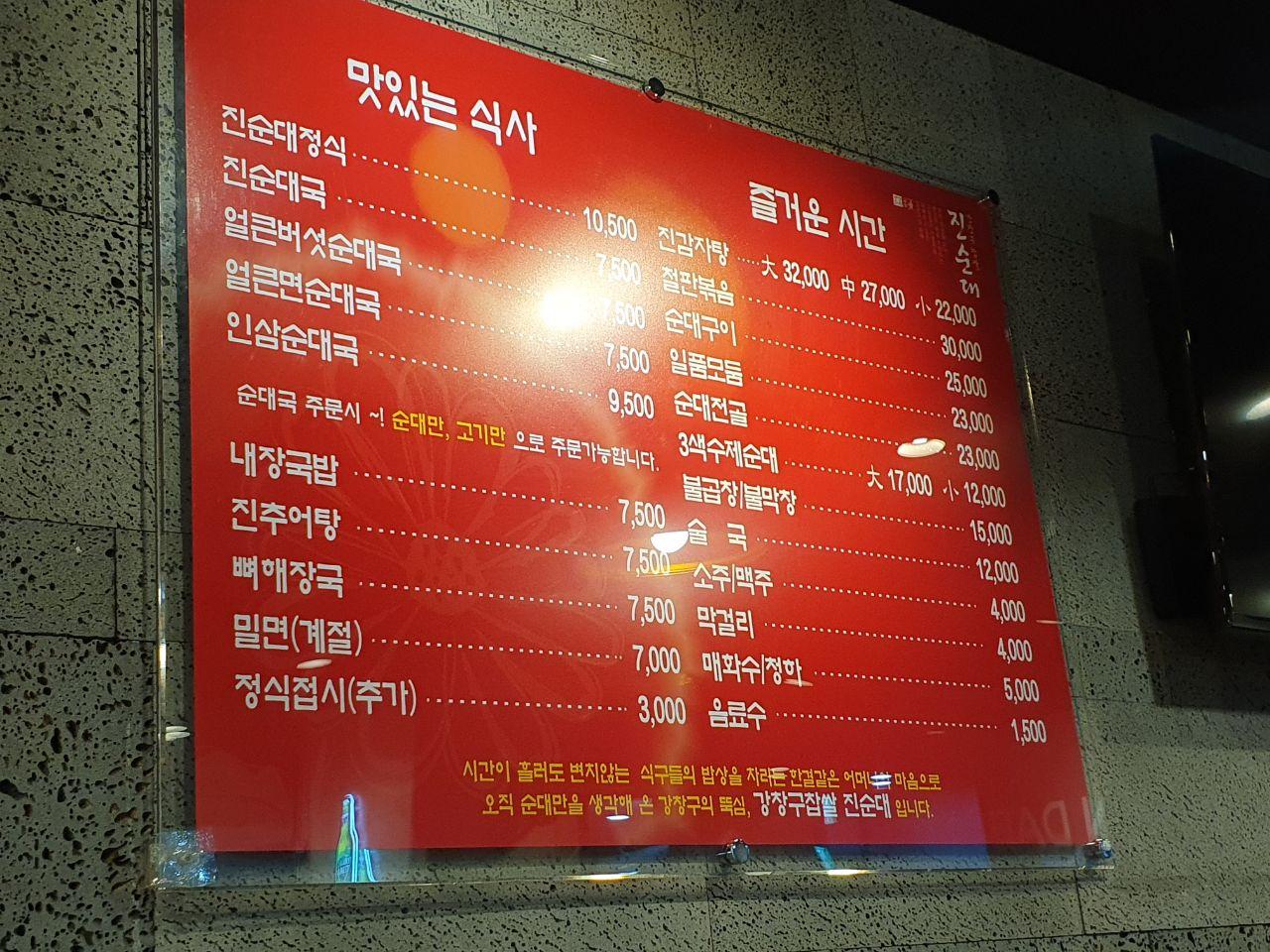 진순대국 7,500원인데 6,500원이나 7,000원 정도면 더 좋았을 것이다.
