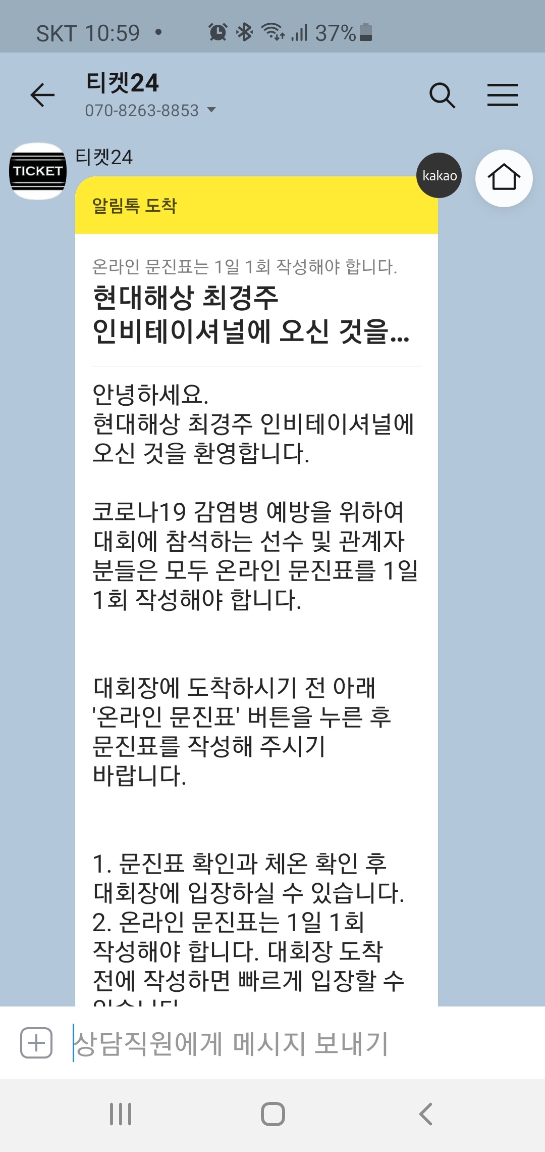 대회기간 내내 등록된 전화번호로 카카오 알림톡이 전송됩니다.