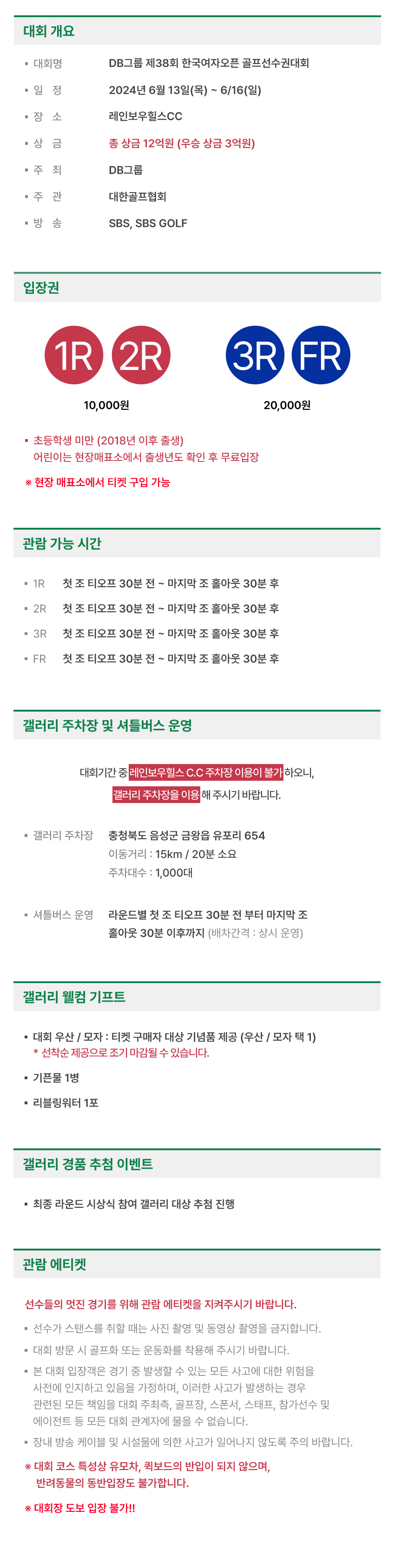 2024년 6월 13일부터 16일까지 DB그룹 제38회 한국여자오픈 골프선수권대회가