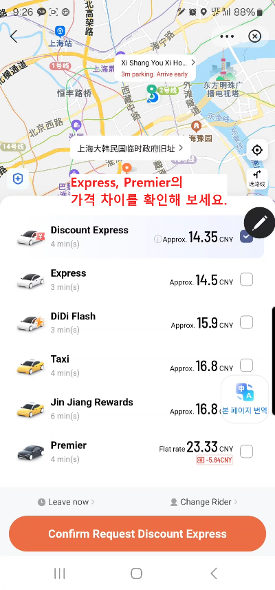 상대적인 것이긴 하지만 DiDi Express 보다 프리미엄이 1.5배 정도 비싸긴 한데요.