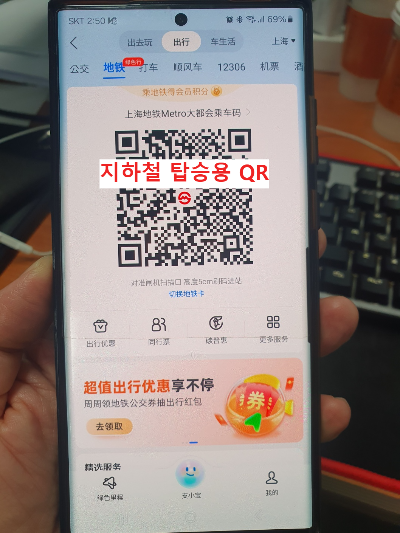 지하철을 탈때는 알리페이에서 지하철 탑승용 QR코드를 발급받거나