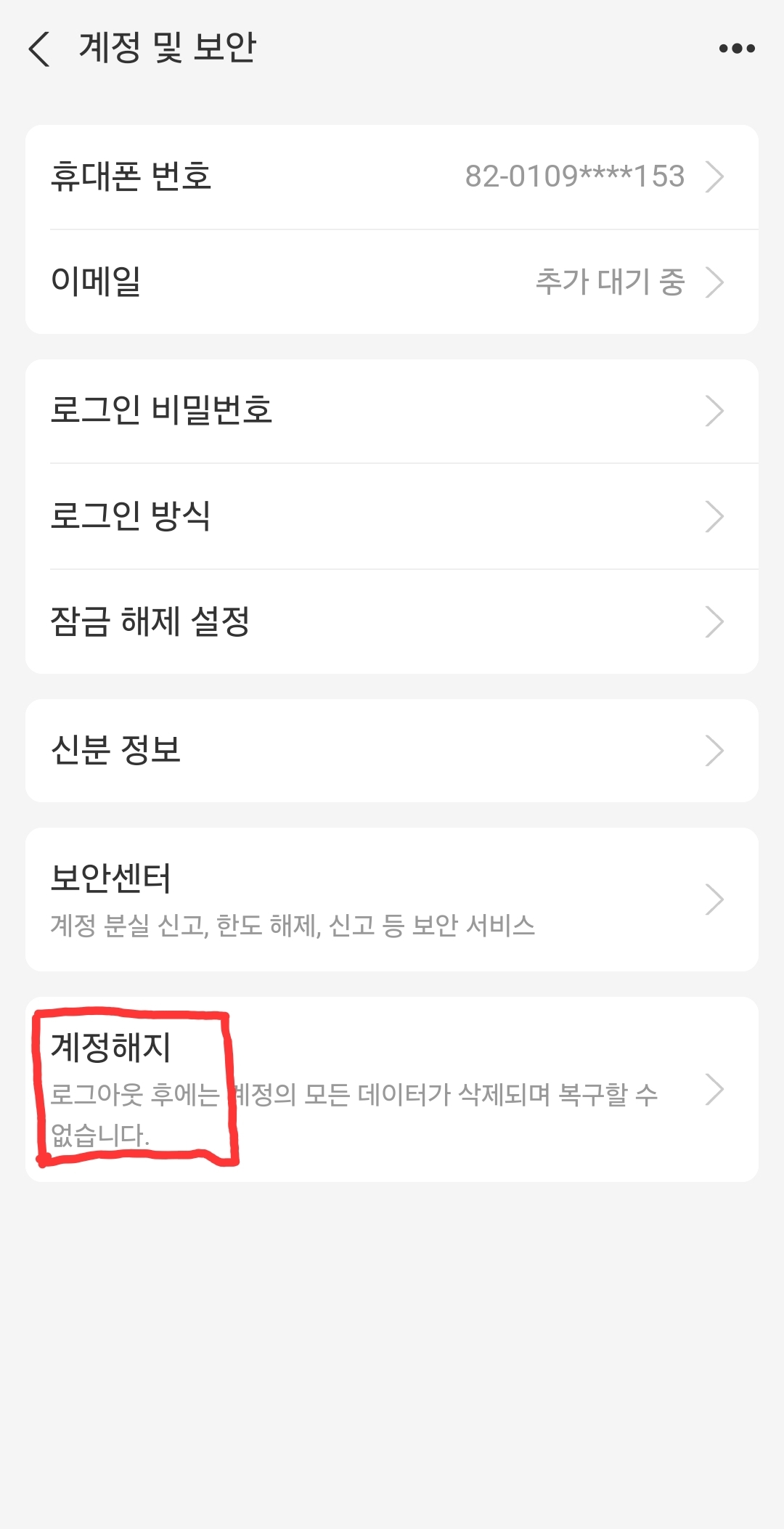 -. 계정 삭제와 관련된 주의사항을 확인하고, 안내에 따라 절차를 진행합니다.