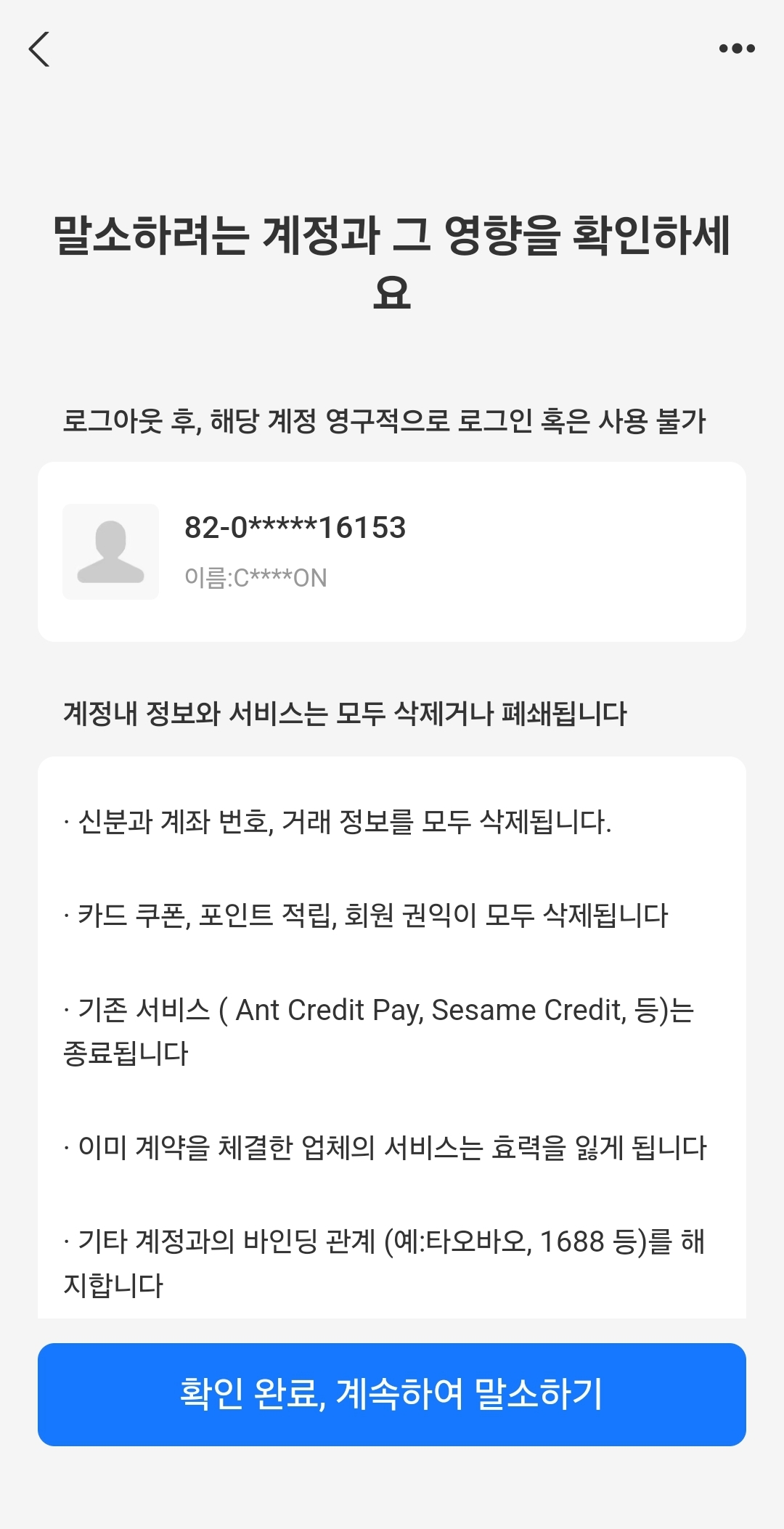 중국 여행 후 알리페이에 등록된 개인정보 삭제하는 방법