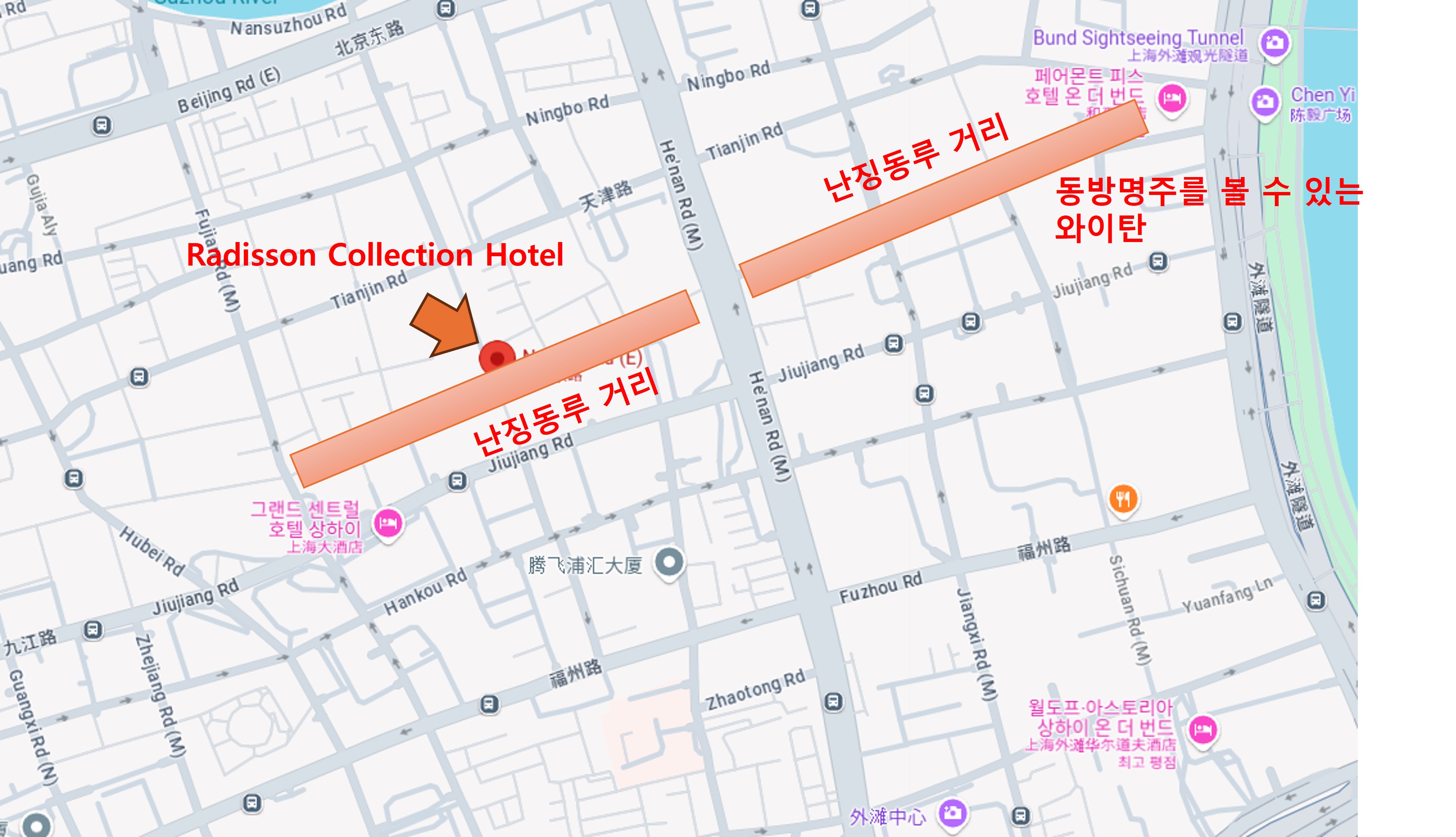 • 🚇 지하철 2호선, 10호선 "난징동루역" (Nanjing East Road) 도보 5분