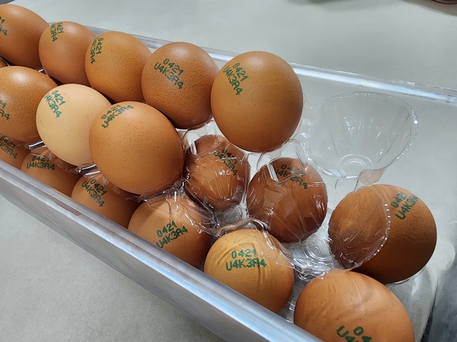 긴 플라스틱 용기에 한꺼번에 넣어 놓으면 계란이 움직이며 깨지는 것이 문제였습니다.