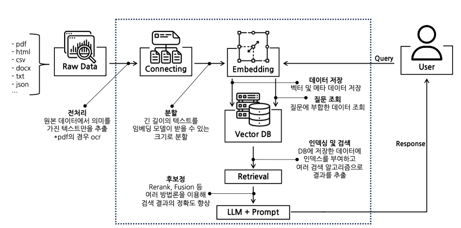 즉, LLM이 부족한 부분—특히 최신 정보나 상세 문서에 대한 이해를—보완해주는 비밀 병기가 바로 RAG입니다.