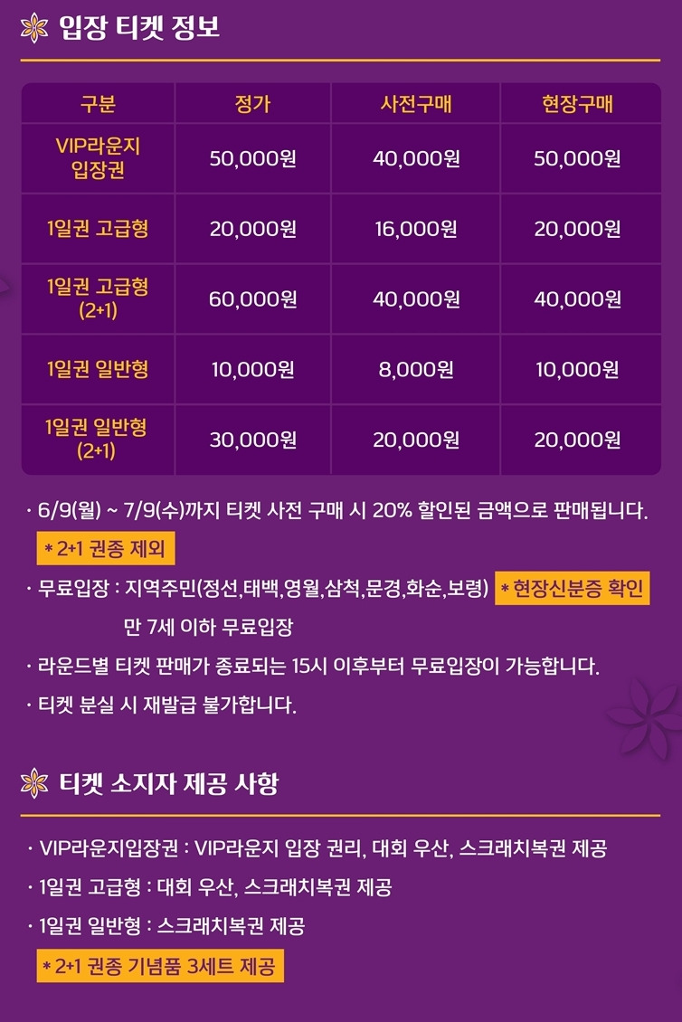 이번 대회에서 특색있는 입장권은 "2+1 입장권"입니다.