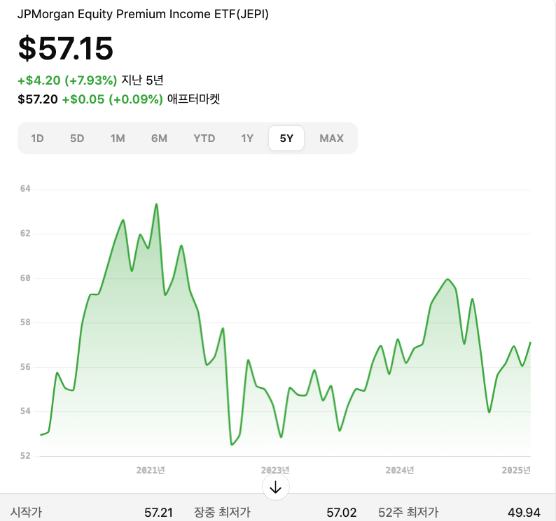 실제로 JEPI 자체 성과 데이터도 비슷한 수치로 조회된다.