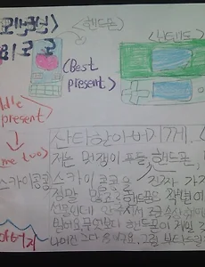 가족이야기120 큰 딸이 바라는 크리스마스 선물 이제 곧 크리스마스입니다. 아빠가 산타로 변신해서 선물을 준비해야 하는 시기이죠. 큰 딸이 2학년인데 이제 서서히 산타의 정체에 대해서 약간씩 의구심을 갖는 눈치입니다. ㅜ.ㅜ 둘째는 아직까진 산타의 존재를 철썩같이 믿고 있구요. 둘째는 산타할아버지께 크리스마스 선물로 스카이콩콩을 바라고 있습니다. 어디서 본 적도 없는데 이런 스카이콩콩을 받았으면 좋겠다고 그림을 떡하니 그렸는데 완전 똑같이 그렸네요. 제품 설계에 감각이 있는 듯 ㅎㅎㅎ 큰 딸은 크리스마스 선물로 바라는 것이 많습니다. 산타할아버지 보시라도 A4에대가 큼지막한 카드를 그려놓았네요. 산타할아버지께 저는 멋쟁이 푸들 진짜 가지고 싶어요. 핸드폰, 닌텐도, 스카이콩콩을 갖고 싶어요. 정말 많죠? 핸드폰은 작년에도 빌었던 선물인데 안 주셔서 조.. 2009. 12. 17. 전국대회 우수상 수상 ^^; 딸을 키우다 보니 이런 일도 있네요. ㅎㅎㅎ 큰 딸이 피아노를 배우는데 그동안 틈만나면 피아노를 치고 놀았습니다. 공부 30분에 피아노 한시간. 엄마, 아빠한테 혼나도 피아노 한번치고 나오면 또 싹 잊어버리고.... ^^; 거의 뭐 이런 식이었죠. 학원에서 추천을 받아서 대회 참가신청을 했고 그동안 나름대로 열심히 연습을 했습니다. 드디어 지난 24일 토요일, 건국대학교 새천년홀에서 '전국 학생 음악 콩쿠르'대회에 참가했습니다. 아침부터 온 가족이 서둘러 일어나서 준비하고 9시 20분 정도에 건국대학교에 도착하여 참가신청을 했습니다. 생각보다 많은 사람들이 와 있더군요. 지우의 순서는 42번째. 지우를 대기실로 보내고 남은 가족은 객석에 앉아 대회를 지켜보며 지우 순서를 기다렸습니다. 드디어 지우순서가 .. 2009. 10. 27. 전국 학생 음악콩쿠르 우수상 획득 ^^; 오랜 연습 끝에 10월 24일 토요일 건국대학교에서 열린 "전국 학생 음악 콩쿠르"에 지우가 참가했습니다. 아침부터 온 가족이 서둘러 일어나서 준비하고 9시 20분 정도에 건국대학교에 도착하여 참가신청을 했습니다. 생각보다 많은 사람들이 와 있더군요. 지우의 순서는 42번째. 지우를 대기실로 보내고 남은 가족은 객석에 앉아 대회를 지켜보며 지우 순서를 기다렸습니다. 드디어 지우순서가 되었습니다. 앞에 있는 친구의 연주만 끝나면 피아노로 가서 자신의 연주를 해야 합니다. 아고.. 얼마나 떨렸을까요? ^^ 피아노에 앉아서 의자를 약간 조절하고 그동안 연습한 곡을 거침없이 연주했습니다. 바라보는 저나 아내는 조마조마 하면서 바라보았구요. 혹시나 실수하지 않을까.... 연습한 대로 무난하게 진행하다가 딱 한군데.. 2009. 10. 26. 고기리 청운정으로 점심으로 먹으러 가다. 일요일 늦은 점심을 먹기 위해서 고기리에 있는 청운정이라는 한정식 집에 다녀왔습니다. 아내가 그전에 한두번 다녀와서 가격 대비 품질이 괜찮은 것 같다고 하여 몇번이고 같이 가보고 싶어했는데 미루고 미루다 겨우 한번 다녀왔습니다. 주소는 경기도 용인시 수지구 고기동 470번지 입니다. 홈페이지는 http://www.cheongunjung.com/ 이구요 전화번호는 031-265-0085 입니다. 얼마전까지만 해도 경기도 수지쪽의 동원동을 지나서 꼬불꼬불 들어가 찾기가 어려웠지만 지금은 분당 미금역에서 새로난 동원터널을 지나서 가니 쉽게 찾을 수 있겠더군요. 고기리에도 맛집이 많지만 이곳은 항상 붐벼서 가능하면 예약을 하고 가는 것이 좋다고 하네요. 저희는 일요일 오후 2시가 넘어 도착했지만 한 30분정도를.. 2009. 10. 21. 삼청동에 가다 삼청동에 다녀왔습니다. 결혼 10주년 기념일을 맞이해서 큰 이벤트를 준비하고자 했으나 자금부족으로 그건 내년초로 잠시 미뤘습니다. 대신 파이낸스센터 지하에 있는 미세스마이에서 베트남 음식을 먹고 삼청동을 구경하면서 커피한잔 마셨습니다. 북악스카이웨이를 타고 팔각정에 올라서 서울시내를 돌아보려 했지만 아이들이 올 시간이 다 되어 아쉬움을 뒤로하고 돌아갔습니다. 돌아보니 맛있는 음식점들이 꽤 있더군요. 카페도 제법 있고 작은 소품을 파는 가게도 많았습니다. 청와대 프로젝트를 할 때 가끔씩 지나가긴 했지만 이처럼 자세히 본 것은 처음이네요. 홍합밥 식당이 하루종일 붐비던데 나중에 홍합밥에 도전하러 한번 더 와야겠습니다. 2009. 10. 18. 지우의 성숙한 연주 오랜만에 올리는 지우의 피아노 연주입니다. 요즘 한창 연습중인 곡인데요. 평소에는 빠르게 빠르게 치는 편인데 오늘은 평소 박자보다 느리게 연주하네요. 2009. 9. 14. 피아노 위를 날아다니는 연우의 연주 연우가 피아노를 배운지 대략 2개월이 조금 넘은 것 같습니다. 다른 곡은 그냥 배운대로 열심히 치는데 딱~~ 한곡은 엄청 잘 칩니다. ^^; 아마도 이곡은 우리나라에서 제일 잘 칠 겁니다. 한번 감상해 보시죠. 녹화를 하니 약간 긴장도 하고 ^^; 2009. 9. 14. 주말 청계천과 광화문과장 분수 물놀이 더웠던 지난 주말, 온가족이 청계천으로 나들이 갔습니다. 그동안 저는 업무차 광화문 주변으로 갈 때 청계천을 한두번 가 보았지만 가족이 모두 청계천으로 나들이를 간 것은 이번이 처음이었습니다. 여름은 역시 수풀의 계절입니다. 긴 장마가 끝난 