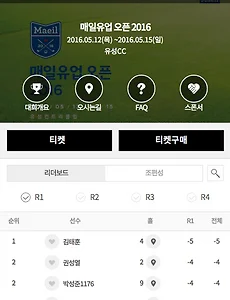 골프야 놀자116 두산 매치플레이 챔피언십, 남들보다 빨리 가는 법(주차장 정보) 강원도 춘천 라데나CC에서 열리는 2016 두산 매치플레이 챔피언십에 다녀왔습니다. 오늘은 32강전이 열리는 둘째날입니다.초여름을 무색해 하는 무더위에 경기하는 선수나 지켜보는 갤러리나 쉽지 않은 날씨였습니다. 경기소식은 나중에 자세히 정리하여 포스팅하도록 하구요.이번 포스팅은 대회장에 빨리 가는 법입니다. 이미 다른 포스팅을 통해 언급한 바 있습니다만,대회가 열리는 해당 골프장까지 직접 차를 몰고 가도 주차를 할 수 없습니다. 선수, 관계자가 아닌 일반 갤러리는 절대로 주차를 할 수 없도록 되어 있습니다. 따라서, 근처 또는 멀리에 있는 주차장으로 바로 가는 것이 시간을 절약하는 법입니다.이것은 골프대회를 주관하는 대행사에서도 관심을 가져야 할 부분입니다. 대회를 홍보를 할 때, 갤러리들이 무조건 이용.. 2016. 5. 20. 매일유업 오픈 2016, 티켓 50% 할인 받는 법 대전 유성CC에서 열리고 있는 "매일유업 오픈 2016"의 입장권을 할인받을 수 있는 방법을 알려드립니다. 이번 경기의 입장료는 평일 1만원, 주말 2만원인데요.모바일 쿠폰이 표시된 아래의 이미지를 대회장 입구에서 보여주시면바로 50%를 할인받을 수 있습니다. 여기서 그림 오른쪽 아래의 "MOBILE COUPON(모바일 쿠폰)"을 보여주시면 됩니다. 오늘(일요일)이 마지막 4라운드 결승전이 열리는 날입니다.모바일 쿠폰으로 할인도 받고, 선수들의 멋진 플레이도 함께 보시기 바랍니다. 2016. 5. 15. NH투자증권 레이디스 챔피언십, TAMM과 함께 즐기기 어제 KPGA 매일유업 오픈에 이어 오늘(5월13일, 금요일)은 KLPGA 대회인2016 NH투자증권 레이디스 챔피언십이 열립니다. KG 이데일리 레이디스 오픈 우승자 고진영 선수, 말이 필요없는 국내 최강자 박성현 선수,교촌 허니 레이디스 우승자인 달걀골퍼 김혜림 선수 등 쟁쟁한 132명의 선수가 참여하고총 상금도 7억원이나 되는 큰 대회입니다. 이 대회는 3라운드로 진행됩니다.금요일인 오늘 개막하여 일요일에 우승자를 가리게 되죠. 대회 장소는 경기도 용인에 위치한 수원CC입니다. 지하철 기흥역에서 걸어서 10~15분정도면 대회장에 도착할 수 있으니 비교적 쉽게 다녀올 수 있습니다. 기흥역에 오시면 2번 출구에 대회 Staff가 있으니 안내를 받으실 수 있습니다. 오늘은 날씨가 비교적 선선한 편이라 골.. 2016. 5. 13. 매일유업 오픈 2016 개막 KPGA의 세번째 대회인 "매일유업 오픈 2016"이 5월 12일 오늘 개막되었습니다. 전체 참가선수가 162명이니 정말로 많은 선수들이 참가를 하네요. 이번 대회는 대전에 있는 유성CC에서 5월 12일부터 15일까지 나흘간 펼쳐집니다. 골프대회 정보를 모두 모아놓은 TAMM을 통해 오전 10시 현재 스코어를 살펴보니, 김태훈선수가 -5로 선두, 권성열, 박성준, 박효원 선수가 -4로 공동 2위를 기록하고 있네요. TAMM은 전체 스코어를 지속적으로 업데이트하여 보여주니 실시간 중계를 보면서 스코어를 확인하면 알찬 경기관람이 될 것 입니다. [TAMM에서 실시간 스코어를 보는 법] 1. PC에서 보시는 분들은 아래 QR코드를 스마트폰으로 스캔하시면 매일유업 오픈 2016의 리더보드로 이동합니다. 2. 스.. 2016. 5. 12. 진귀한 기록이 풍성한 KG 이데일리 레이디스 오픈 1라운드 후기 4월 29일부터 5월1일까지 열리는 KG 이데일리 레이디스 오픈의 1라운드 경기를 관람하기 위해서 용인시 처인구에 위치한 써인포인트CC에 다녀왔습니다. 이번 경기는 3라운드로 치뤄지는데요.박성현선수가 연속해서 우승하는지, 아니면 디펜딩 챔피언인 김민선선수가 타이틀 방어를 할 것인지나름대로 흥미가 있는 경기라 볼만했습니다. 평일(금요일)인데도 불구하고 서울에서 비교적 가까운 곳에서 열리는 경기라 그런지 갤러리가 많았습니다. 특히, 1라운드에서 박성현선수와 김민선선수가 한 조를 이루게 되어 플레이를 하니 관심이 더 갔습니다. 이번 대회는 무료대회입니다. 가까운 곳에서 열리고 경품도 푸짐하니 주말에 다녀오시면 좋을 것입니다. 영동고속도로 양지IC로 나오면 대회장을 알리는 현수막이 보입니다. 써닝포인트CC의 이.. 2016. 4. 30. 봄나들이로 가볼만한 포천 몽베르CC, 동부화재 프로미오픈 결승전 관람하기 봄 기운이 노랗게 올라오는 토요일에 KPGA 개막전인 동부화재 프로미 오픈을 관람하였습니다. 장소는 경기도 포천의 몽베르CC로 산정호수 옆에 있는 국내에서 아름다운 코스 중 하나로 알려준 골프장입니다. 오늘은 황사가 심하고 어제와 그제 날씨가 안좋아서 미뤄진 2라운드 경기를 오전에 치르고 오후에 3라운드 경기를 치루는 방식으로 진행이 되었습니다. 김대섭, 최진호, 변진재 선수 등이 치열하게 순위 싸움을 벌이고 있는 상황입니다. 내일 열리는 결승전이 참 볼만한 것 같습니다. 그럼 잠시 동부화재 프로미오픈이 열리는 몽베르CC를 살펴볼까요? 1. 실시간 스코어 보는 법 골프장을 방문하면 제일 눈에 띄는 것 중 하나가 출전선수 전원의 스코어를 크게 나열해 놓은 리더보드입니다. 이 대회도 골프하우스 바로 앞에 이.. 2016. 4. 23. 남자골프대회 개막전 동부화재 프로미오픈을 무료로 즐겨보자!! 안녕하세요. 드