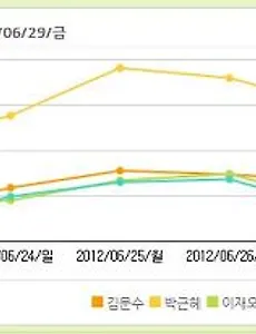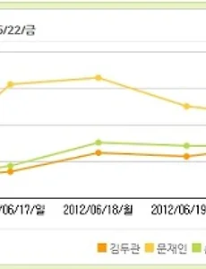 민주통합당 대선후보의 6월 4주차 버즈분석입니다. 문재인후보와 손학규후보의 물밑 신경전으로 뜨거운 한주였습니다. 김두관후보는 다음달 10일경에 도지사 사퇴와 함께 대선출마 선언을 할 예정이라 하네요. 이런 이슈들이 6월 4주에는 어떻게 반영되었는지 이번주 버즈를 살펴보겠습니다. ㅇ 분석방법 : 와이즈넛의 버즈인사이트 서비스를 이용 ㅇ 수집대상 : SNS를 제외한 블로그, 카페, 뉴스 등의 온라인 웹문서 ㅇ 수집기간 : 2012/06/16/토 ~ 2012/06/22/금 1주일간 1. 민주통합당 분석 민주통합당의 문재인, 김두관, 손학규를 키워드로 하여 온라인 버즈량을 살펴보겠습니다. 우선 6월3주차에 비해 248건의 버즈가 증가하였습니다. 1일 평균 1,785건의 버즈가 발생하고 있는데요. 6월 2주, 3..
