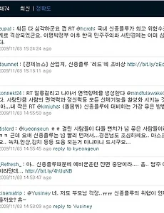 IT산책352 KBS의 김미화氏 고소!, 트위터 유저들은 어떻게 평가할까? KBS가 블랙리스트를 언급한 방송인 김미화氏를 고소했습니다. 김미화氏가 자신의 트위터에 블랙리스트에 대한 언급을 하였고, 이를 문제삼아 KBS가 명예훼손으로 고소를 했고 결국은 경찰서에 출두하게 되었습니다. 연이은 보도를 보면 진중권 교수, 시사평론가 유창선氏도 고소할 것이라고 하는데 참~~ 방송국에서 뭐 하는 것인지 모르겠습니다. 아무리 트위터가 소설미디어로써 자리매김을 하고 있다 하더라도 그래도 큰 방송국에서 개인이 올린 단 한 줄짜리 트윗을 갖고 이렇게까지 해야 되는지 이해가 안되네요. 저만 그렇게 생각하나 싶어 트위터 검색서비스 트윗트렌드(http://www.tweetrend.kr)에서 유저들의 생각을 살펴보았습니다. 트윗트렌드에서 검색어로 '김미화'를 넣고 검색을 하니 (이미지를 클릭하시면 크게.. 2010. 7. 8. 이찬진씨는 박근혜 의원 트위터 대변인? "이찬진" 한글과 컴퓨터로 유명했고 현재는 드림위즈 대표이면서 트위터에서 막강 트윗을 날리는 사람입니다. IT 특히 스마트폰 관련해서 여러가지 소식을 전하고 있어서 저도 팔로우 하고 있는데요. 어제 한나라당 박근혜 전 대표의 트위터에 대해서 아래와 같은 트윗을 날리는 것은 개인적으로 좀 보기 안좋군요. 트위터가 많이 보편화된 지금 팔로우 숫자가 그렇게 중요한 건지 즉, 우리나라의 팔로우 2위라는 타이틀이 중요한 것인지 궁금하며 박근혜 의원이 트위터를 하면 우리나라 역사에 한 장면이 되고 우리사회가 한단계 나아가는 것인지 정말로 묻고 싶네요. 이미 많은 정치인들이 직접 트위터를 개설해서 많은 사람들과 소통을 하고 있습니다. 유시민, 노회찬, 천정배, 안희정, 심상정, 이정희 등등 꼭 박근혜 의원을 콕 찝어.. 2010. 7. 2. 아이폰과 갤럭시S 사이에서 갈 길 바쁜 LGT, 대형사고 치다. 아이폰과 갤럭시S에 밀리는 LGT가 드디어 대박을 쳤습니다. LG텔레콤의 모바일 인터넷 서비스 오즈(OZ)의 홈페이지를 방문하면 메인 화면에 이름을 적을 수 있는 칸이 나옵니다. '이름 입력하고 당신을 2.0하세요!'라고 적힌 칸에 자신의 이름을 입력하고 옆에 있는 화살표를 클릭하면 화면 오른쪽에 이름이 적힌 아이콘이 아래로 후두둑 떨어집니다. http://www6.ozgeneration.com/?dClock 제 아이디를 넣고 한번 해 보았습니다. 보시는 것처럼 오른쪽 중간에 제 아이디가 보입니다. 그러면서 OZ에 대한 설명이 좌측에 나오죠. 이제 문제의 이름 '이명박'을 넣어보겠습니다. 어떤 결과가 나올까요? ^^; '이명박'이라고 입력하면 "욕설을 입력하실 수 없습니다."라는 메세지가 나옵니다. 몇번.. 2010. 6. 29. 트위터 검색엔진 출현 tweetrend.kr 이런 검색엔진도 나올 것이라 예상하고 있었는데 드디어 나왔네요. 웹검색, 블로그 검색에 이어 나온 새로운 검색 서비스 바로 트위터 검색입니다. 저는 아직까지 트위터를 활발하게 사용하고 있진 않습니다. 영~ 혼잣말 하는 것 같고 Follower도 별로 없고 누구랑 무슨 이야기를 해야 할 지 잘 몰라서요. ㅜ.ㅜ 암튼 제 트윗은 http://twitter.com/bluebuzzkr 입니다. 혹시라도 저와 흔히 말하는 WEB2.0 속에서 Social Network 관계를 갖고자 하시는 분은 Following 해 주세요. (어휴~~ 요즘은 뭔 말이 이리 어렵나요 ㅜ.ㅜ) 암튼 새로나온 검색엔진 tweetrend을 간단히 살펴보겠습니다. 먼저 초기화면입니다. 검색창이 깔끔하고 시원하게 나타납니다. 구글의 영향을 .. 2010. 6. 16. 트위터의 폭발적인 성장세를 말해주는 사건 정말로 많은 사람들이 트위터를 사용하고 트윗을 날리고 있나봅니다. 그동안 믹시로나 트위데크 같은 트위터 어플리케이션을 사용하다가 오랜만에 트위터 웹사이트를 접속했더니 이런 메시지가 나오는군요. 너무 많은 트윗으로 인해 트위터 서비스가 정상적이지 않다는 내용입니다. 얼마나 기다리면 정상화될까요? 트위터의 대응시간도 눈여겨 볼만한 대목입니다. 많은 트위터 유저들이 답답하고 갑갑해하겠네요. 2010. 6. 15. 이젠 애드센스가 아닌 트위터 광고로 수익을 올려보자. 많은 블로거들이 구글 애드센스를 이용하여 일정한 수익을 올리고 있습니다. 저 역시 많은 금액은 아니지만 2~3개월 주기로 구글 수표를 받고 있습니다. 욕심 같아서야 한달에 한번씩 수백달러짜리 구글 수표가 팍팍 들어왔으면 좋겠지만 그게 쉽지가 않더라구요. 요 근래 다음View에서 ViewAD를 새로 개편하면서 블로그들에게 최소 1만원에서 최대 160만원까지 보조금(?)을 지급한다고 하는데 그것도 상위 블로거 몇몇이 싹쓸이 할 것 같은 느낌이 있어서 달아놓긴 했지만 얼마나 효율이 있을지 궁금합니다. 하지만 실망하긴 조금 이른 것 같네요. 이젠 트위터를 갖고도 광고수익을 얻을 수 있는 애드얌(https://www.adyam.kr) 이라는 서비스가 나왔습니다. 오픈 한 지 조금 된 서비스인데요. 자기 트위터를 .. 2010. 6. 14. 아주 맘에 들게 바뀐 올블로그, 올블릿 그동안 블로그에 포스팅을 하면서 몇군데 메타블로그에 송고를 했었고 그 중에서도 올블로그가 대표적이었다. 블로그칵테일도 있지만 지금은 예전 명성을 이어가지 못하는 듯 같기도 하고... 암튼, 초기에는 올블로그를 통해 유입되는 트래픽도 상당해서
